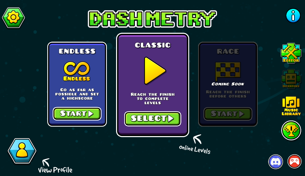 Inspired by the legendary Geometry Dash, Dashmetry offers a challenging and addictive experience.