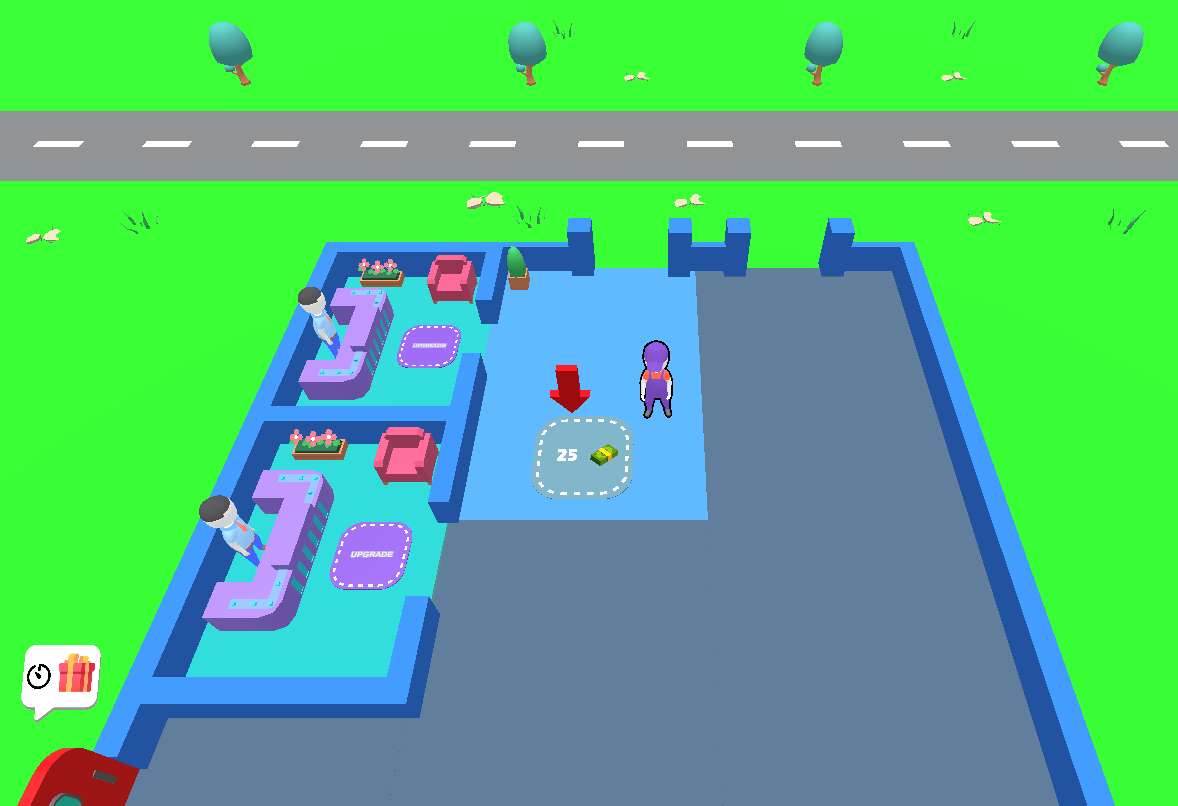 You will start your business with limited capital by moving your character to money collection points. Then, you need to guide him to pick up designated boxes. Per trip, you are able to hold no more than two items. Then, you let him carry these goods to the truck. Once eight packages are full, the truck will depart and complete its mission. Speed is a key factor in increasing revenue. When you accumulate enough capital, you can perform many other activities, such as